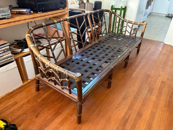 No damage, excellent condition. The rawhide wrapping is fully intact. Its quite old so as expected there are normal ware scuffs on perimeter sections of the rattan Rough dimensions 28” tall, 31”...