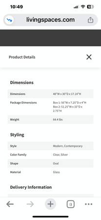 Coffee table dimensions are listed in screen shot above 40x30x18.