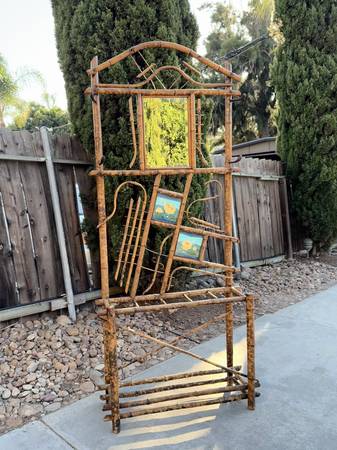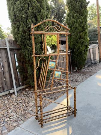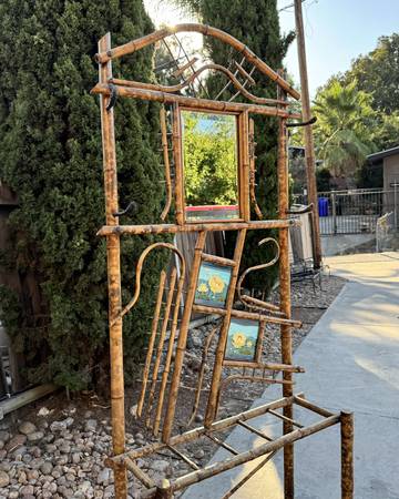 Discover the essence of bohemian style with this rare mid-century vintage bamboo rattan hall table stand, complete with a charming vanity mirror. Its unique design captures the spirit of the boho chic aesthetic, bringing warmth and character to any entryway or dressing area. Perfect for showcasing your favorite decor or as a functional space for your beauty routine, this piece effortlessly blends vintage charm with modern flair. Elevate your space with this stunning statement piece!