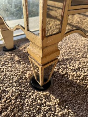 Intentionally weathered buttery yellow shabby chic mirrored chest of drawers in "like new" condition. Clean, strong drawers. Excellent quality. Real wood - just not sure what kind of wood, it is a...