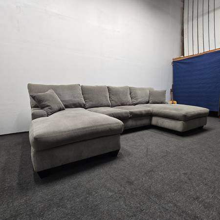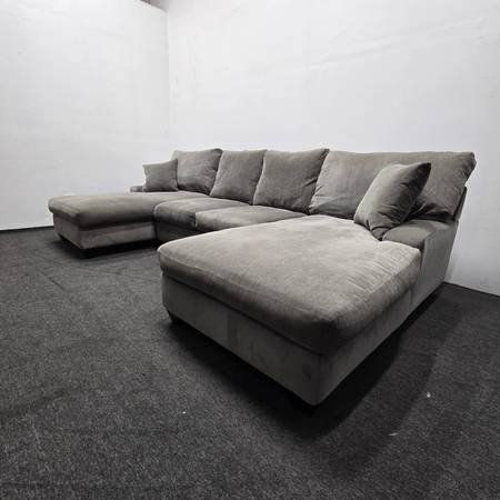 All pillows / cushions are washable. This is a very comfortable living spaces sectional in like new condition ready for delivery and set up.