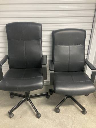 Executive office chairs,4,black,leather, malfunction,swivel,hydraulic height adjustment,arms,rollers,clean,help deliver,sold by the each. Please call .