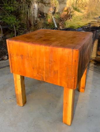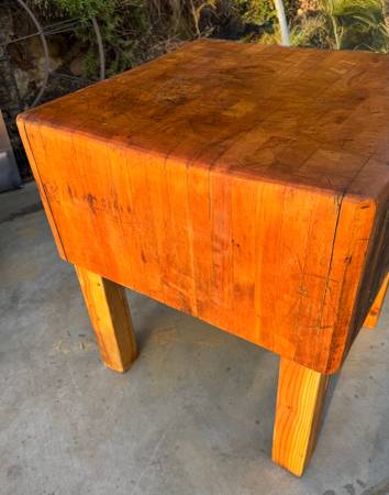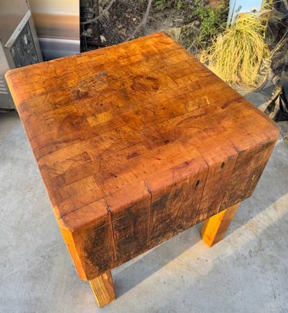 Oversized large vintage rustic cutting board features a 100% solid wood top with no air gaps, ensuring durability and reliability for all your kitchen tasks. Perfect for use as a butcher block or kitchen island, its heavy-duty construction makes it ideal for chopping, slicing, and prepping. The timeless design and sturdy craftsmanship add both function and charm to any kitchen. Delivery available for extra fee or North Park pickup.