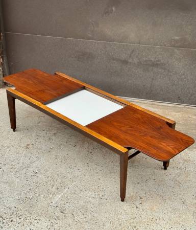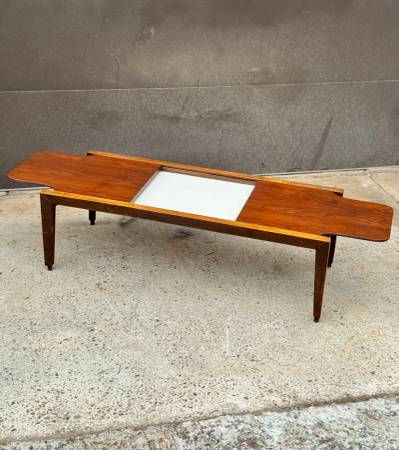 Gorgeous mid century modern vintage walnut coffee table showcases a stunning, unique wood grain pattern that adds warmth to any space. Its long design easily extends up to 65.5 inches, giving you extra room whenever needed. Stylish and functional, it’s a perfect blend of classic charm and practical versatility.Delivery available for extra fee or North Park pickup.