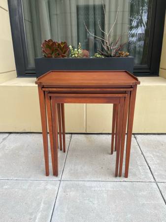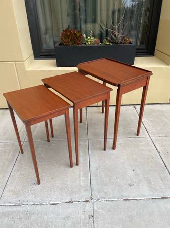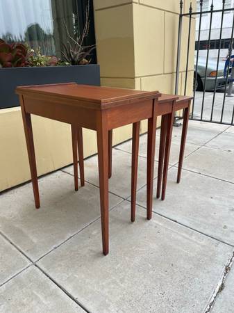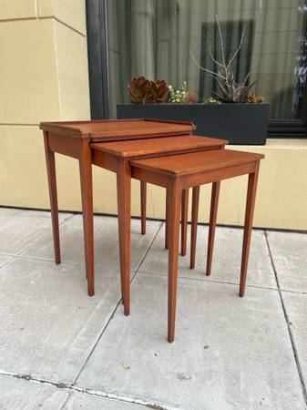 Mid century Nesting Tables made by Mersman. The are beautiful, practical and sensible. In very good and sturdy restored condition. Dimensions are: 22” Wide x 15” Deep x 26” High.
