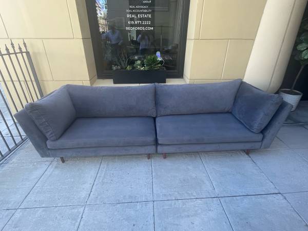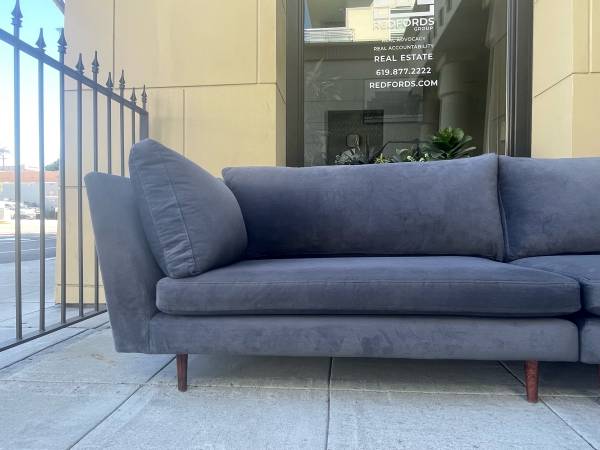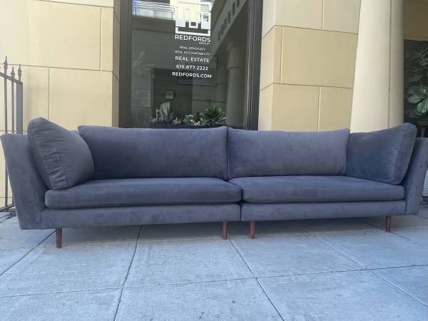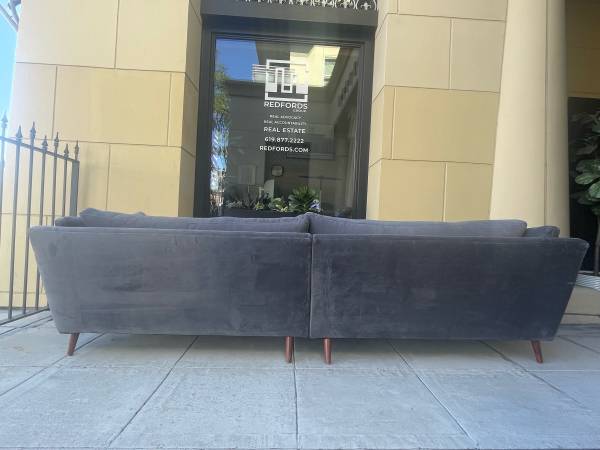It was upholstered 2 years ago in a graphite microfiber velvet which has just been professionally cleaned for its sale.
