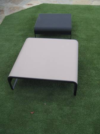 Were new never used, near perfect. The black metal frames table has a modern and simple appearance and a leather soft-covered tabletop. Side Table Round Nesting Coffee Table Set of 2, Modern Square Coffee Table, Minimalist Metal Side Tables, Sturdy and Requires No Assembly, Accent Furniture for Living Room, Small Spaces, Bedroom, The smaller black coffee table measures 31.5'' x31.5'' square and is 11.5'' tall. The tan/beige coffee table measures 39.25'' x 39.25'' square and is 13.5'' tall. The black one was designed to stack on top of the tan one. The list ranges from $900.00 to $1200.00 for the pair.---if interested leave a call back number for quicker response---