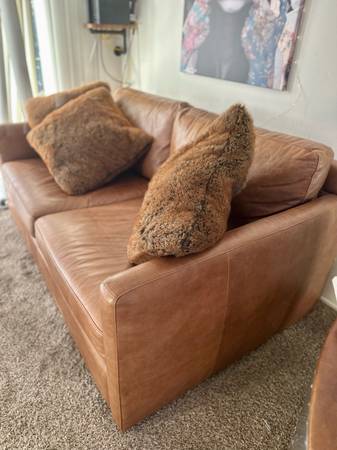 Pottery barn top-grain leather couch. Very comfortable! Great condition. 69w x 40d x 33.5h Original price $2400 + tax