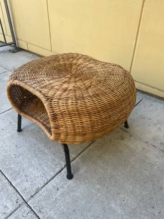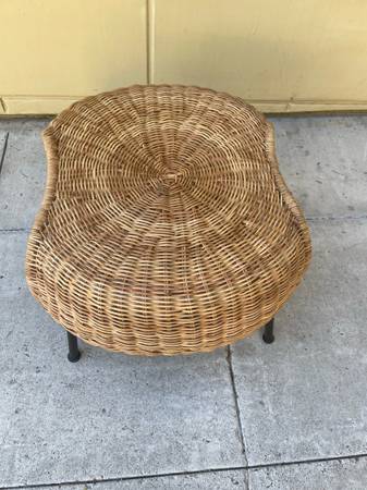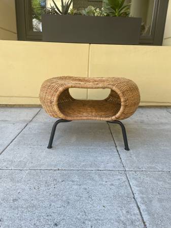 Rattan Gamlehult Ottoman Stool with storage area and black metal legs. A great Swedish design and in very good condition. Measures: 24” Wide x 20” Deep x 14” High