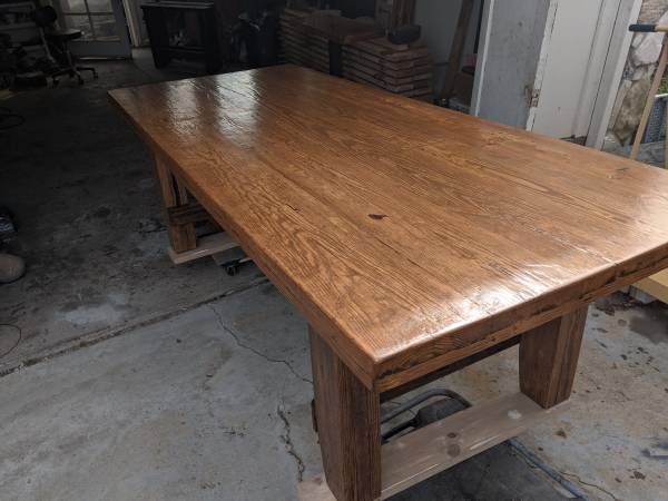 Reclaimed scaffolding wood dining table 8' x 40" x 30" tall Handcrafted tables, reclaimed wood, solid wood, rustic, green, distressed, made in U.S.A, unique, custom shapes