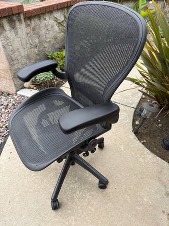 Selling our Herman Miller size C Aeron Office Chair. This is the fully loaded model Aeron that includes fully adjustable arms, lumbar support, back tilt, seat angle front tilt, tension control, and height adjustment.