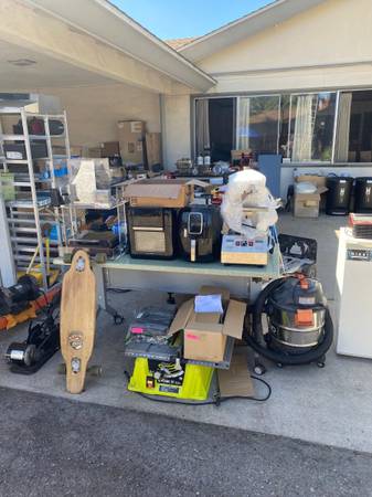 Furniture: Couches, bed frames, nightstands, shelving units, dressers , coffee tables, dining set, dressers. Outdoor: Patio furniture, benches, tables, grills, field mower, professional, weed whacker, chainsaw, all kinds of garden tools and more.