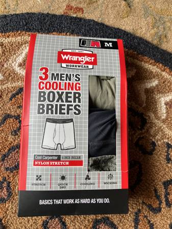 3 PACK OF NEW WRANGLER XL BOXER BRIEFS. 5.00. ( xl briefs came in a Med marked package)