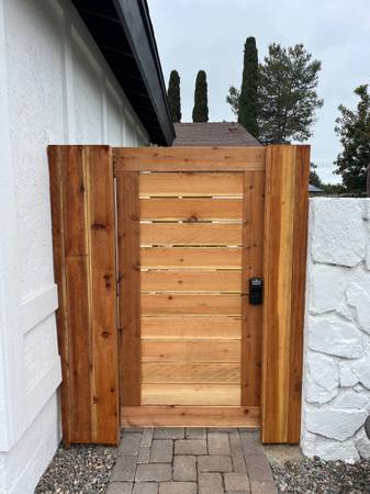 Hello, I’m Henry Sullivan of A&H Sullivan Construction LLC. I build and install Custom Wood Gates of all styles and lumbers. Usually I recommend either Redwood or Western Red Cedar for Durability but can use any material you’d like. Give me a Call or text at show contact info