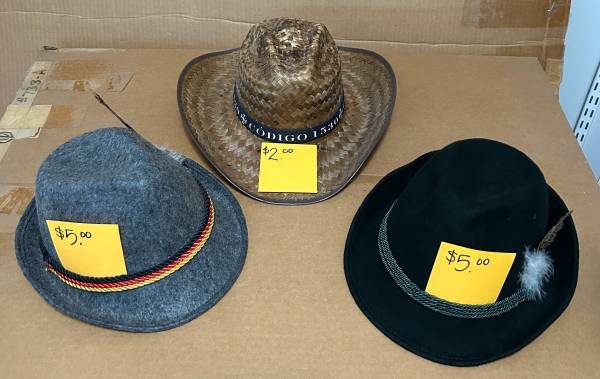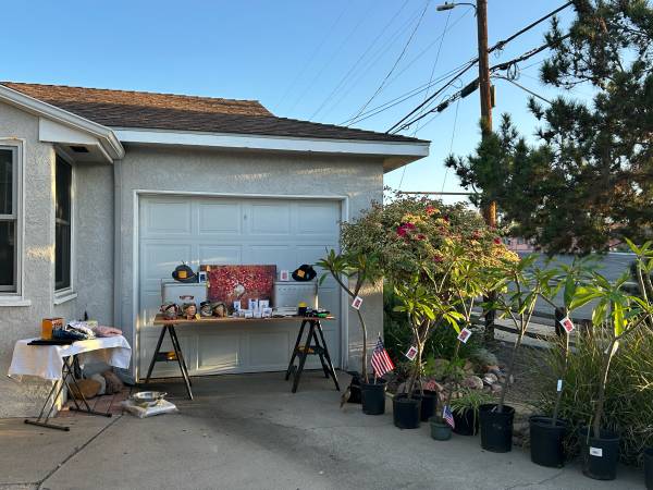 Yard sale with neighbor from 7am to about 10am. Plumeria plants, Collectibles, Royal Doulton character jugs, Oktoberfest hats and other miscellaneous things.
