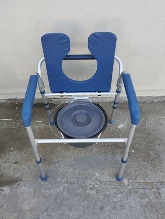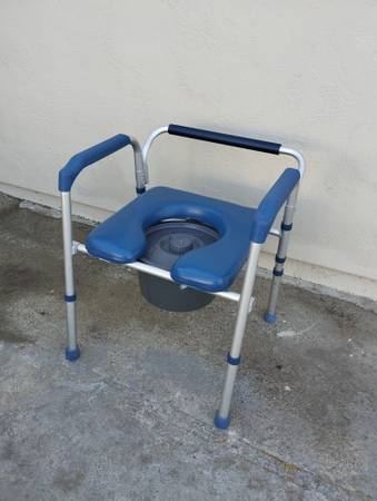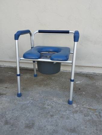 As new, great condition, clean. Retails for $130. Delivery available for a small fee depending on your zip code. Padded seat and arms add comfort. Fits over standard toilets or add included bucket for use in any room. Lightweight aluminum frame supports up to 265 lbs.