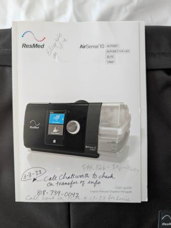 Manufacturer - ResMed Model - AirSense 10 Approximate Hours of Usage - 9101 Accessories Included - Carry case, manual, quick start guide, hose, power cord, mask