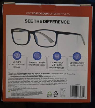 NEW three-pack of Foster Grant reading glasses. Rare magnification +2.75. Costco stopped selling this magnification several years ago. These come with one case.