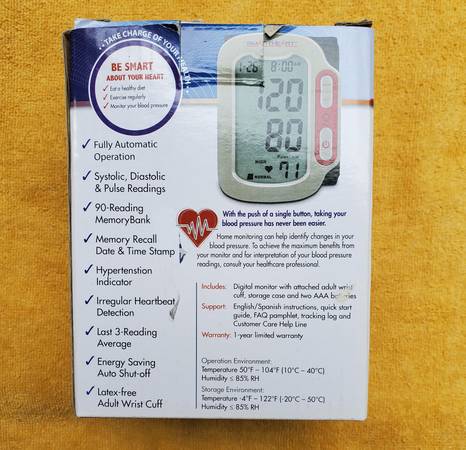 Latex-free cuff fits wrist size: 5" - 8.25"