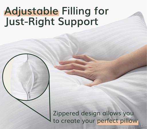 ADJUSTABLE FILLING: Get the perfect loft level with our zippered removable fill design, perfect pillows for all kinds of sleepers. Be sure to massage out the pillow, to redistribute the filling, after adjusting!