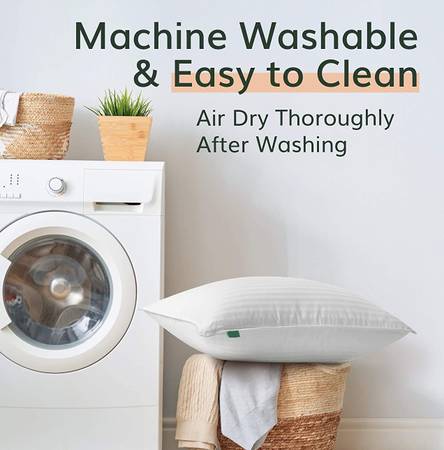 100% WASHABLE & DURABLE – Another benefit of down alternative pillow is that it is 100% machine washable. Be sure to air dry thoroughly after washing.