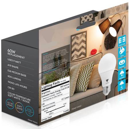 Brand new in a box, never been used. For pick up only in El Cajon. Price is firm. SAVE MONEY: 9 Watt LED Bulbs replaces 60 Watt incandescent equivalent, saving 85% in energy. BRIGHT COLOR: These LED...