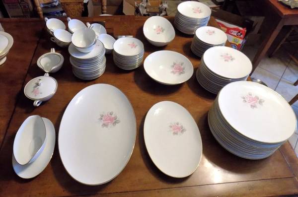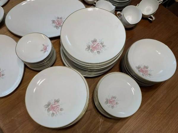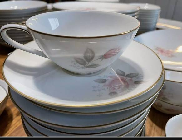 Pink floral China pattern Noritake Roseville Pink rose on white ceramic Service for 8 or 12 people 7 pcs per place setting Service for 8: $295 Service for 12: $395 Additional place settings OR...
