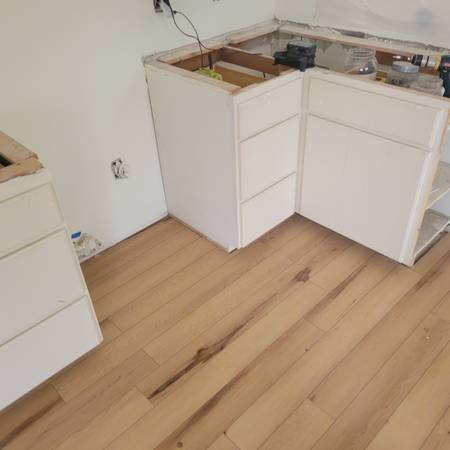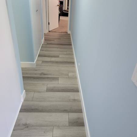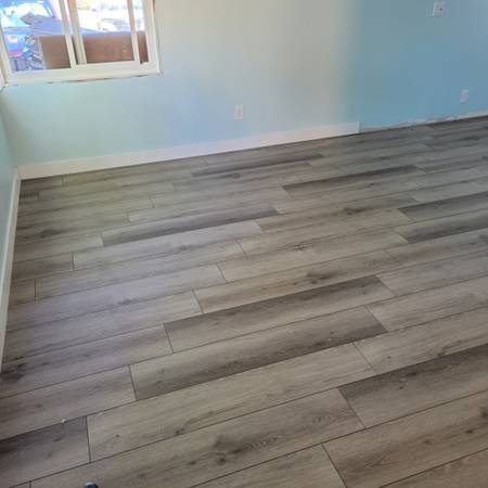 Please call to receive a bid for installation of laminate or vinyl plank flooring, labor for basic installation is $2 per square ft. Angled or rounded rooms or entryways, difficult doorways and room transitions may cost more. I also do removal and reinstallation and caulking of existing baseboards, or I can install new baseboards, painted, installed and caulked, charges vary based on the baseboards you select, and the cost is per linear ft. Taller baseboards will cost more per linear ft. I only install good quality brands.