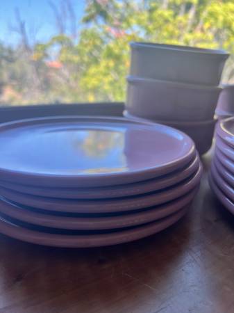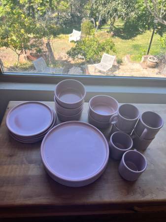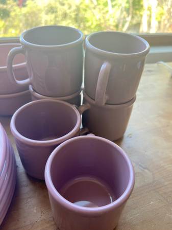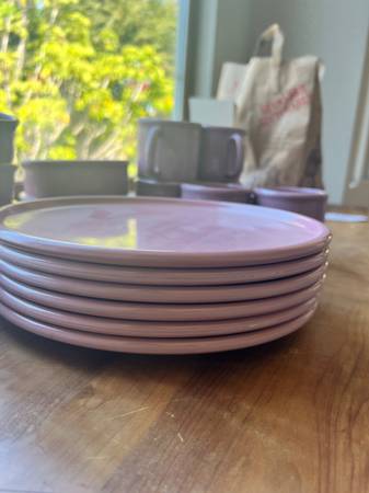 Vintage SRO Plastics Manufacturing Company Dallas, TX dusty rose melamine dish set. Includes: 5 dinner plates 6 salad/dessert plates 5 bowls 6 mugs My mother passed away and these belonged to her....