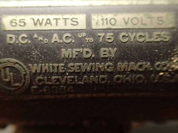 See photos... A very heavy White Series 77 Electric Sewing Machine w/sewing cabinet... Frankly don't know how/if it works...plugged it in...but don't see an 'on' switch or pedal... Switched the...