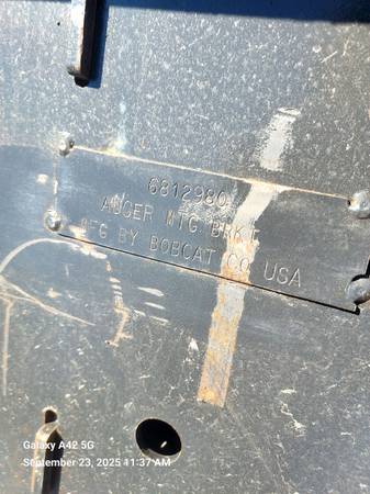 New unused 2025 Bobcat auger attachment mounting plate with pin. Will fit other skid steer models like Cat, Kubota, volvo, gehl etc. Asking $650 each. Have skid steer on site to load on truck. LOCATED IN SAN DIEGO CA 92102. HAVE 3 AVAILABLE AT THIS TIME ALL NEW CONDITION.