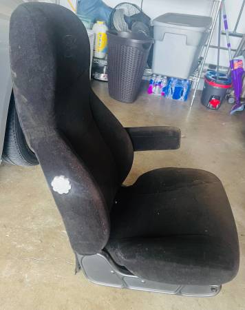 Passenger Non-air ride black cloth battery box seat. High back Good condition. Shopping available do not know cost, if shipped shipping will be added to sale price (prefer local pick up)