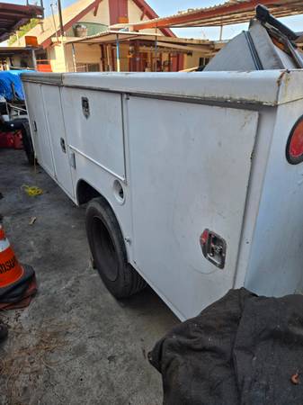 11' long utility bed 81" from front of bed to center of wheels 94" wide Working liftgate Pacific brand Engine fire on truck reason why parting out my loss your gain, first $1000. Takes it.
