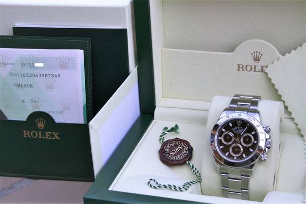 I have for sale a Rolex Daytona Cosmograph watch model 116520 in near mint 96% condition. This watch is comes in Stainless Steel with Black Dial, it is a D serial and it is discontinued. This...