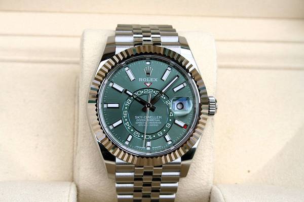 I have for sale a NIB Rolex Sky-Dweller watch model 336934. This watch comes in 42MM Stainless Steel case on a Jubilee band and with mint green Dial. This watch comes unworn with box and paper as...