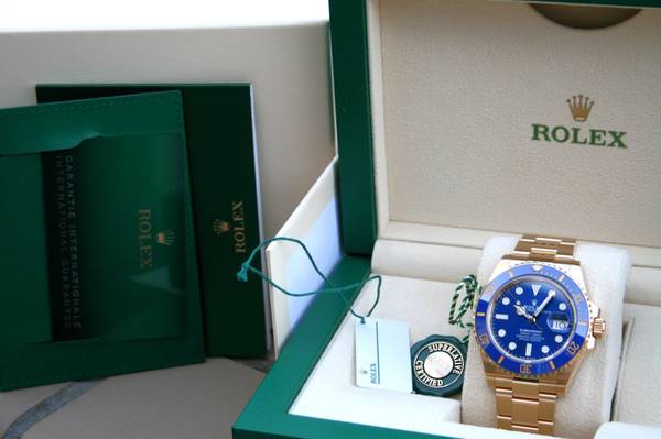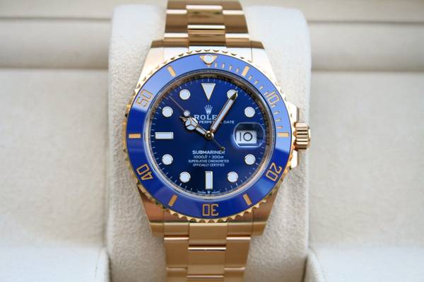 I have for sale a Rolex Submariner watch model 126618 in near mint 96% condition. This watch comes in 18K Yellow gold, Ceramic blue bezel and blue dial, 41MM case. The watch was purchased in 2020...