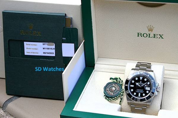 I have for sale a Rolex Submariner Date watch model 116610 in near mint 96% condition. This watch comes in Stainless Steel and it has a 40MM case. This watch comes with box and factory service paper...