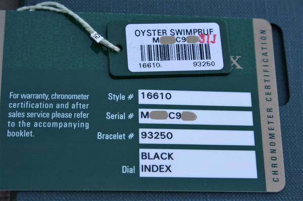 Rolex Submariner Date model 16610 Random serial unpolished T9797