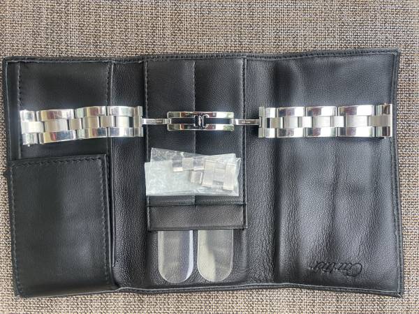 As new Mens size large Roadster Band w clasp, additional Links and Leather Pouch. 619474three4one7