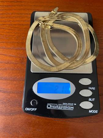 HERRINGBONE NECKLACE 24 INCHES BRACELET 8 INCHES 14KT YELLOW GOLD 6 MILLIMETERS WIDE LOBSTER CLASP GRAM WEIGHT OF BOTH 30.1 GRAMS