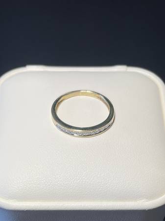 Due to the very dainty band, there is no visible 14K stamp, which is common for fine, minimal designs. The ring has been professionally tested and confirmed as solid 14K gold by another jeweler and includes a diamond certification card.