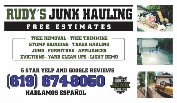 Please call or text Rudys junk hauling. anytime for a free estimate