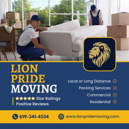 📌LION PRIDE MOVING ~ FAMILY & LOCALLY OWNED (619) 341-4554 (Local & Long Distance Movers)