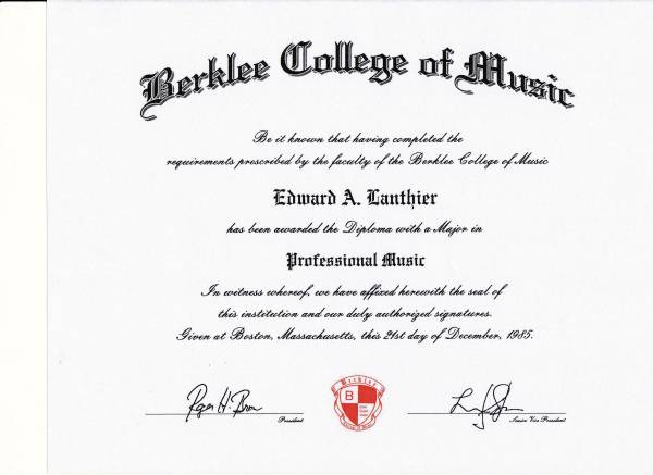 I am a former student of the MCGILL CONSERVATORY OF MUSIC in Montreal and a graduate of BERKLEE COLLEGE OF MUSIC in Boston.