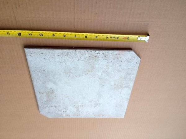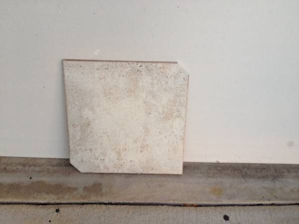 11 oatmeal-colored ceramic (indoor) tiles (12" by 12") with mitered corners, made in USA