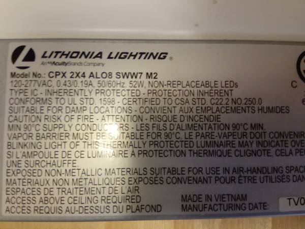 Led Lithonia 2X4 ceiling panels.$40 each have four. Great for lighting in your garage. Call 858-373-7 nine0eight. Leave message if no answer calls only. no scammers, no texting,no email,