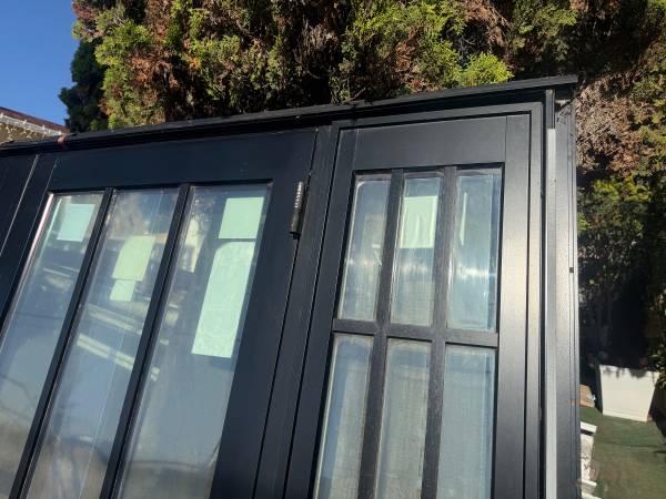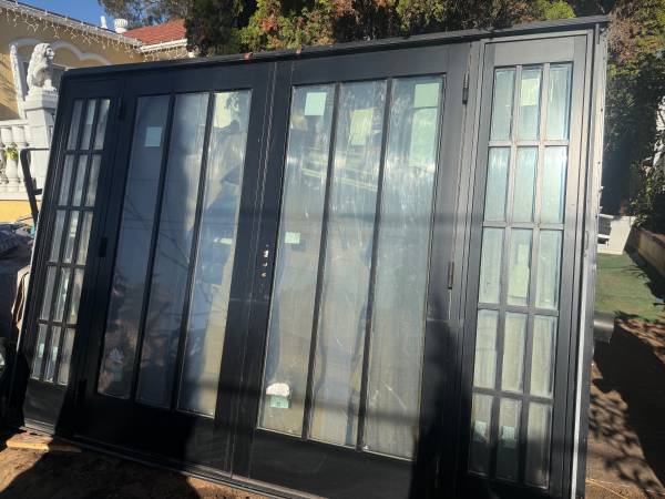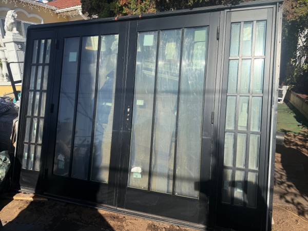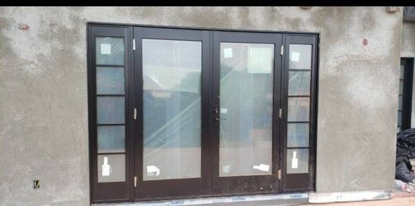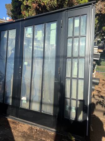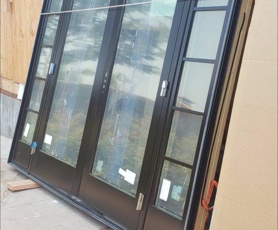 New Modern style black French door never been used dimensions 9 feet and 4 inches wide by 80 inches tall Door design is like first pictures Brand JW This French door is beautiful excellent quality...