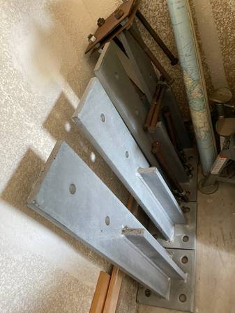 These are wood column Knife Plates. They are intended to create a uniquely striking architectural feature to support heavy wooden columns (see picture for an installed example). The required templates for the concrete foundations, along with the nuts and bolts, are included. I never used them so they have been tucked away safely in my garage for 15 years.