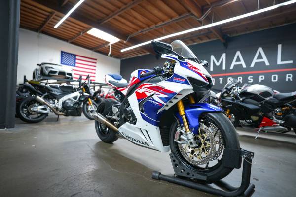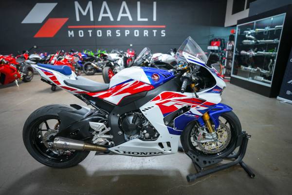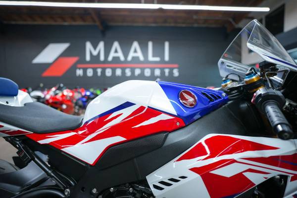 Maali Motorsports is proud to present this 2023 Honda CBR1000RR-R Fireblade SP 30th Anniversary Edition in Pearl White—celebrating three decades of Fireblade heritage. This ultra-exclusive superbike is part of a worldwide run close to 2,000 units, each individually laser-engraved on the top yoke. The serial numbers aren’t strictly sequential—owners report bikes numbered into the 1,800s or even beyond, confirming that production was limited yet tightly managed. Equipped with Honda’s 999 cc inline-four delivering 214 horsepower, this SP model features MotoGP-derived tech: Öhlins Smart-EC suspension, Brembo Stylema calipers, aerodynamic winglets, and a “Ring of Fire” TFT start-up animation. With its rarity, commemorative finish, and track-bred performance, this 30th Anniversary Fireblade SP is a true collector’s masterpiece.
