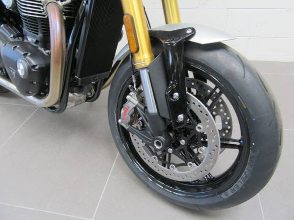 While you won’t enjoy more power from the RS’s motor, you will get a Sport ride mode the base model doesn’t have and the first quickshifter ever offered on a Modern Classic Triumph. The RS is also blessed with Brembo’s impeccable Stylema front brake calipers biting on 320mm discs, while the standard ST12 gets by with radial-mount J.Juan 4-piston calipers. Although you won’t go faster with the RS’s brushed-aluminum fenders and suede-like rider seat, you will look cooler among the cafe-racer cognoscen